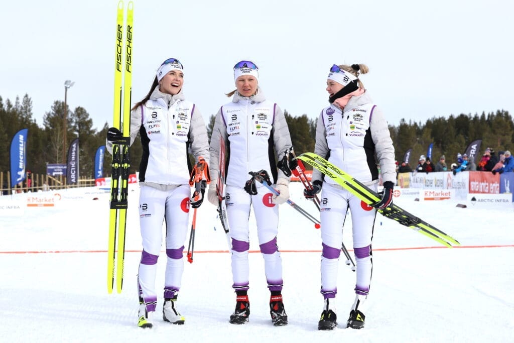 Vuokatin kolmikko Vilma Nissinen, Eveliina Piippo ja Jasmin Kähärä kukisti toiseksi tulleen Ikaalisten Urheilijat 50,2 sekunnilla Inarin laduilla.