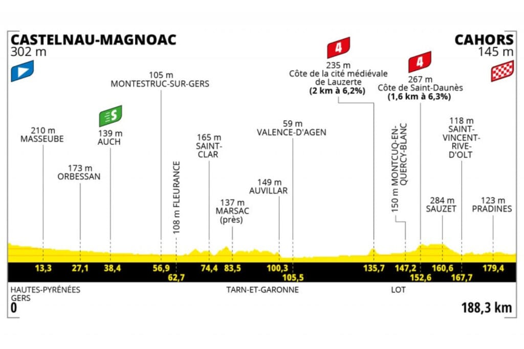 Päivän kisa on tämän vuoden Tour de Francen viimeinen säännöllinen etappi. Se kulkee Castelnau-Magnoacista Cahorsiin, on 188,7 kilometriä pitkä, ja matkalla on sprintti ja muutamia mutkia.